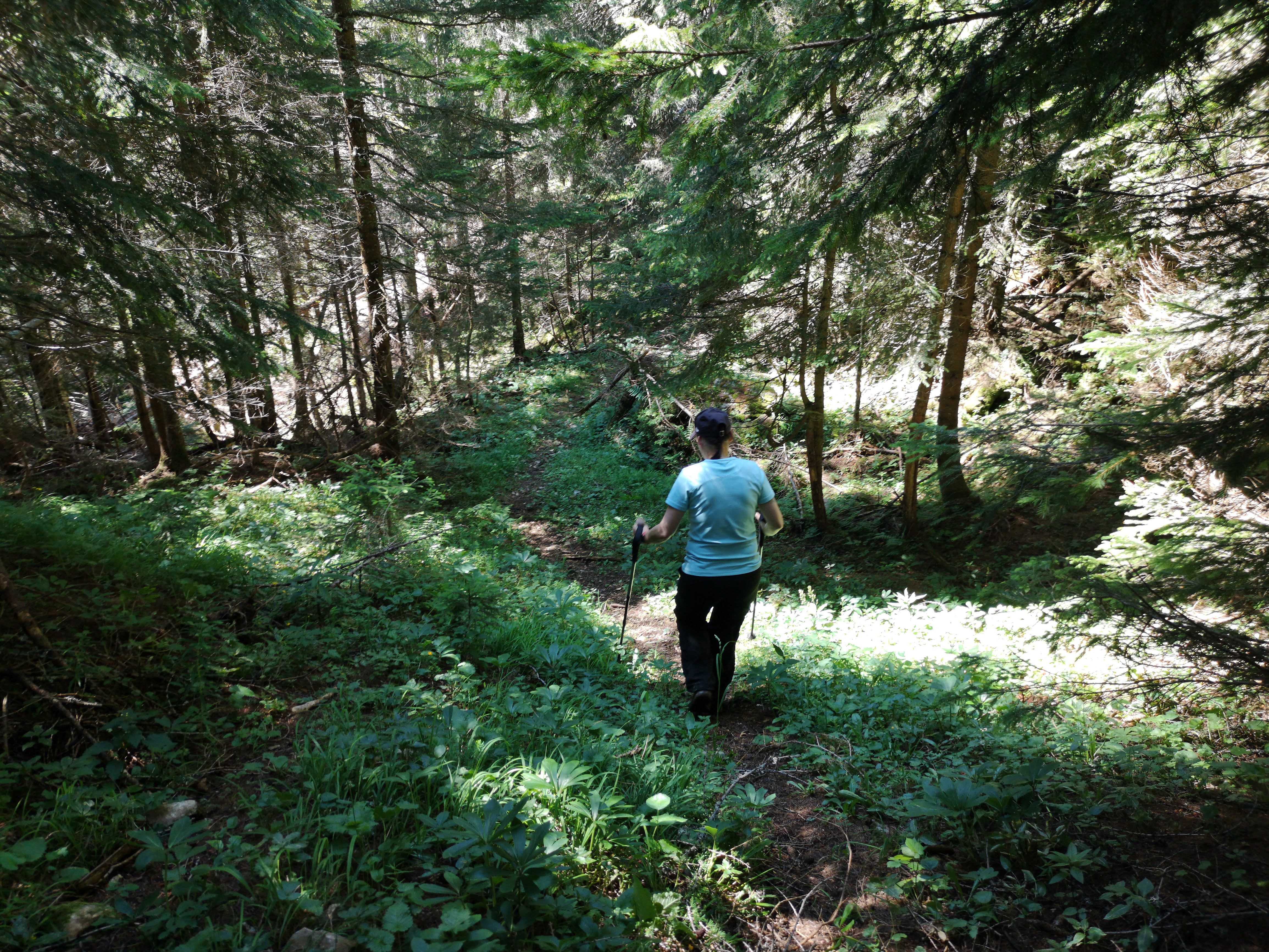 Schon alles ziemlich verwachsen, aber durchaus noch begehbar. Die Latschen sind halt störrisch.